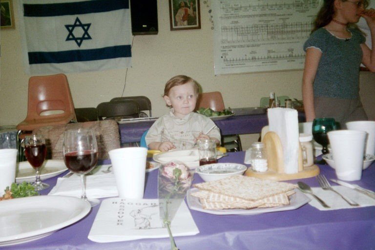 Elijah at Passover table. Note the flower on table; Bro. Dan gave all the females a flower.